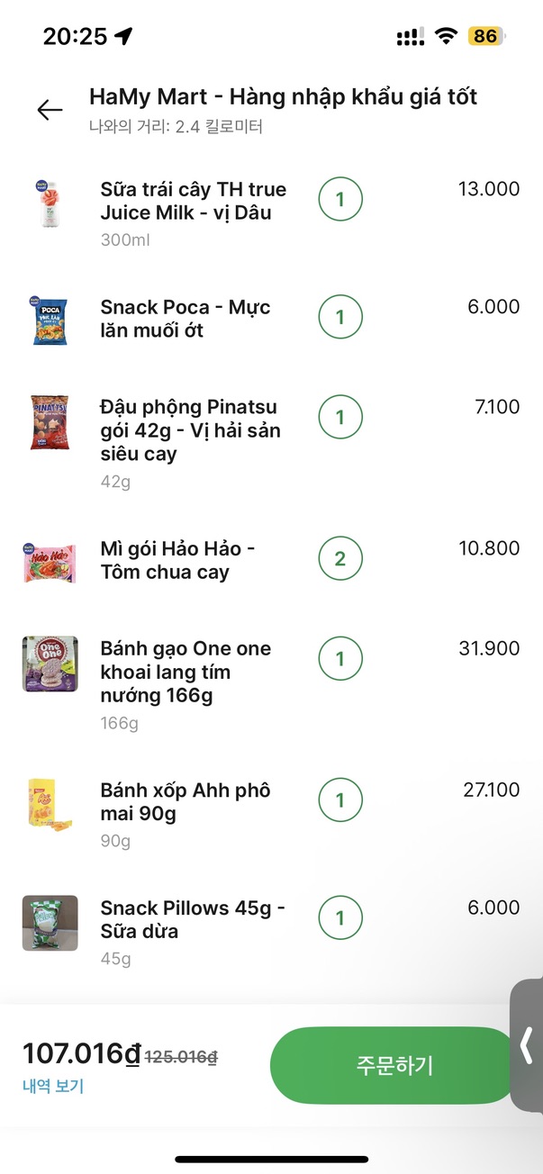 30분 뒤, 내가 주문한 과자 중에 선택한 맛의 과자가 없다고 연락이 옴. 메시지를 주시하자. 주시하려니 조금 피곤한데 느린 답장은 배송을 늦출 뿐. 없으면 없다고 그랩 앱 내 재고를 다시 정리해야 되는데 베트남 사람들은 이렇게 소통하는 게 편한지, 생각보다 그랩 업데이트를 안 하는 것 같다.
