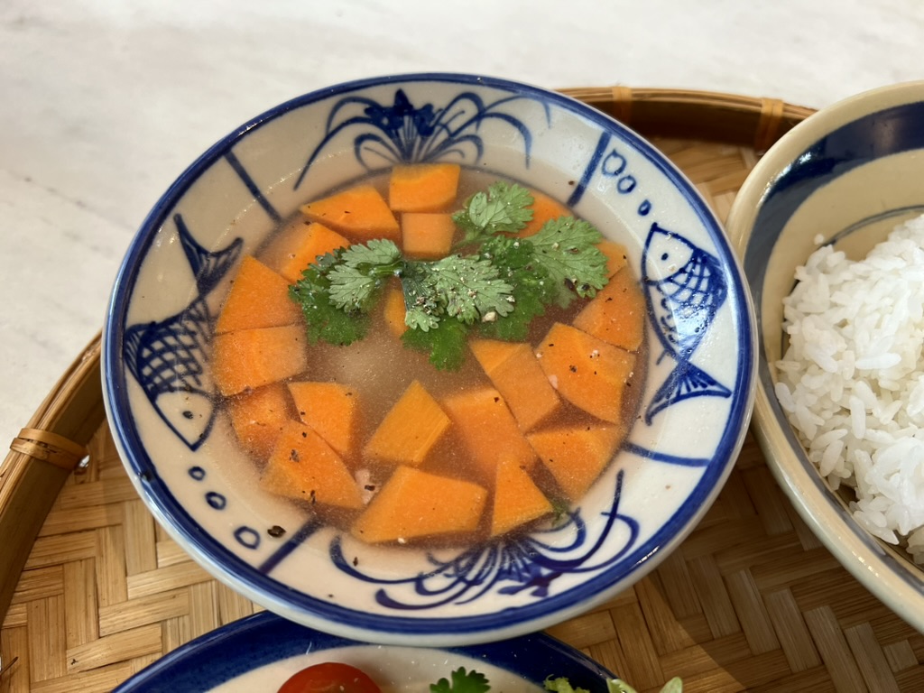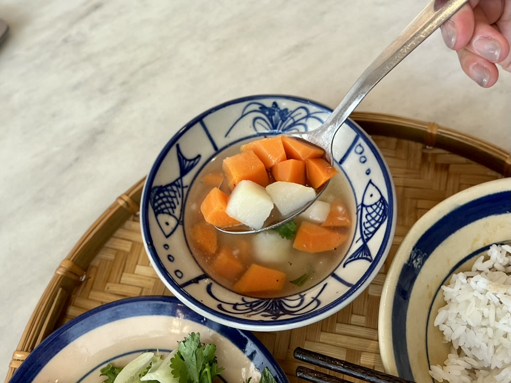 중국인, 영어권 외국인, 베트남 사람들. 음식은 조금 비싸다. 베트남 물가 기준. 사실 여기까지 와서 왜 이걸 시켰는지 모르겠지만 일단 나는 배가 고프니까. 밥이 당겼다. 맛있어. 한국에서 먹는 정갈한 한식 밥상 같았다. 추천함.